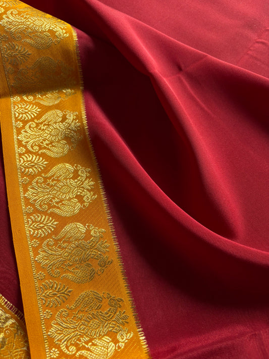Discover the elegance of pure Mysore crepe silk sarees at discounted prices. Timeless beauty for your wardrobe.