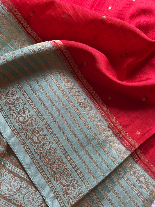 Pink-blue Kancheepuram silk