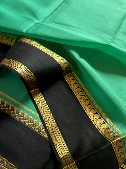 Lightweight pure Mysore crepe silk sarees with contrast bentex border and intricate zari work.