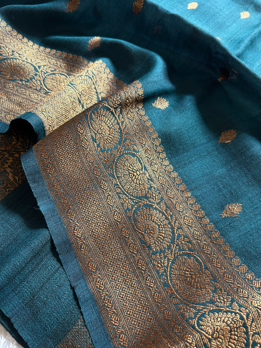 Banarasi raw tussar silk sarees with zari buttas allover, rich Banarasi zari work on pallu and border.