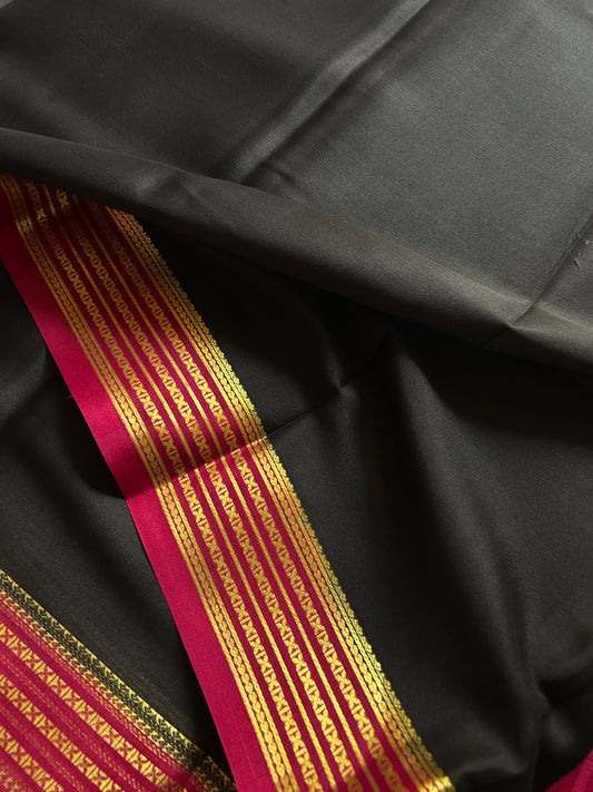 Light weight pure Mysore silk sarees of 60 GSM with double contrast and intricate zari work on the border.