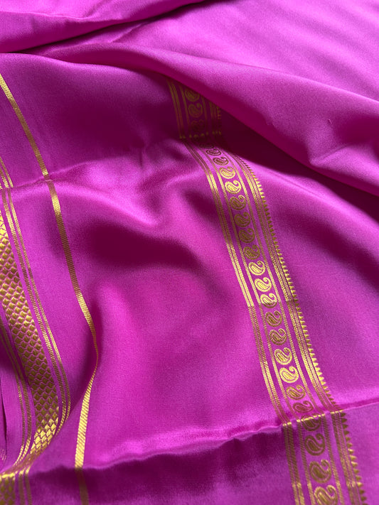 Pure Mysore crepe silk sarees of 110 GSM, beautiful gap border with intricate zari work.