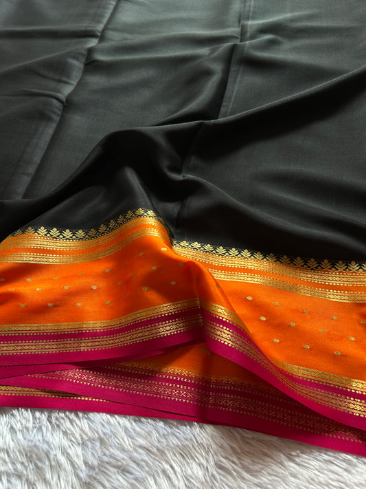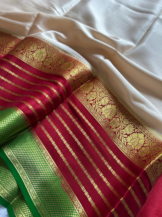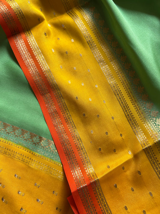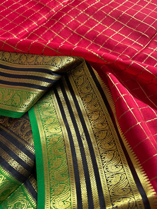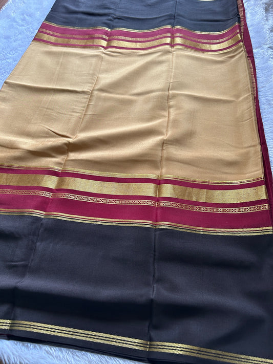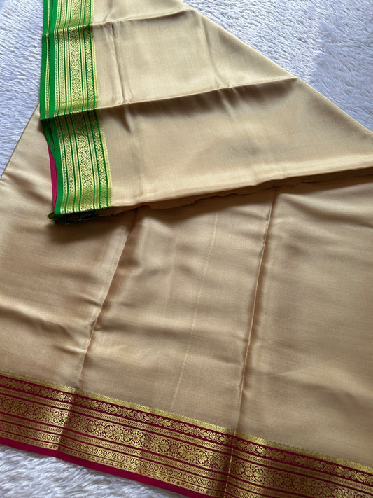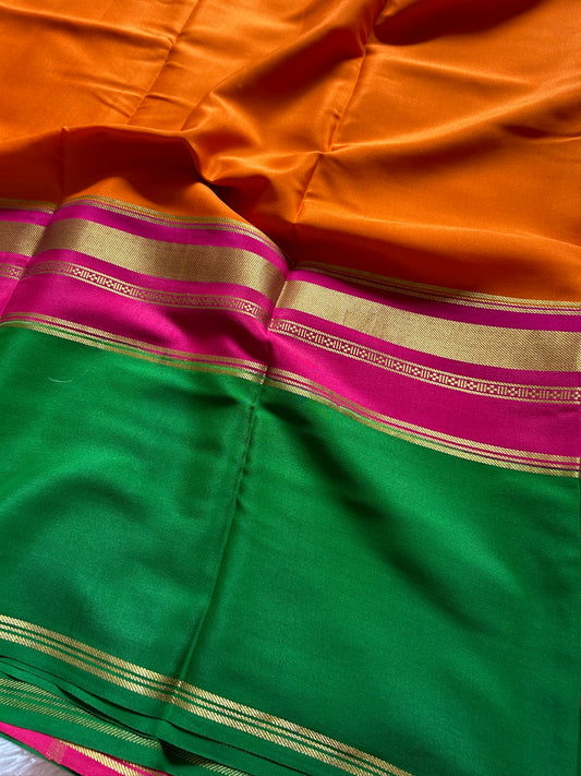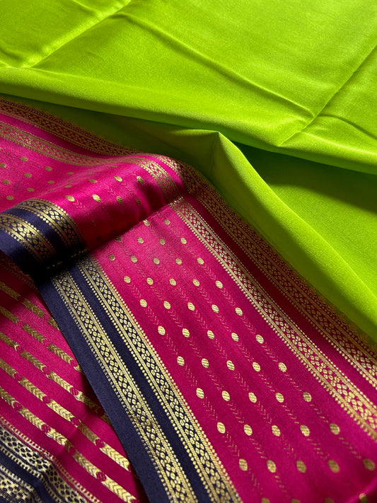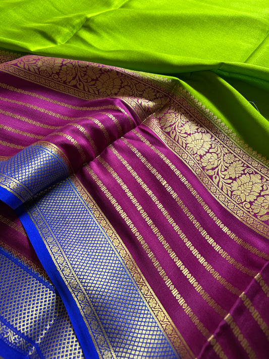 Pure Mysore crepe silk sarees with stunning triple contrast border.