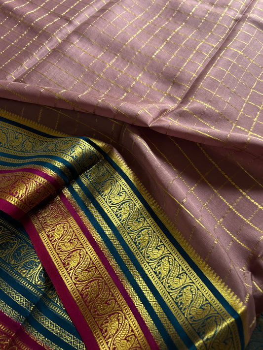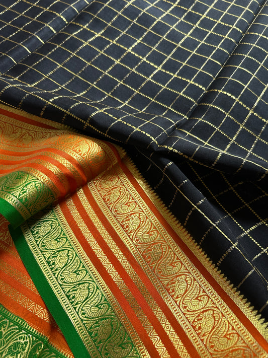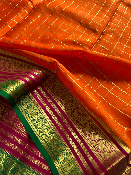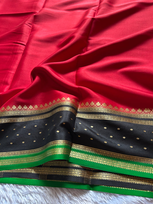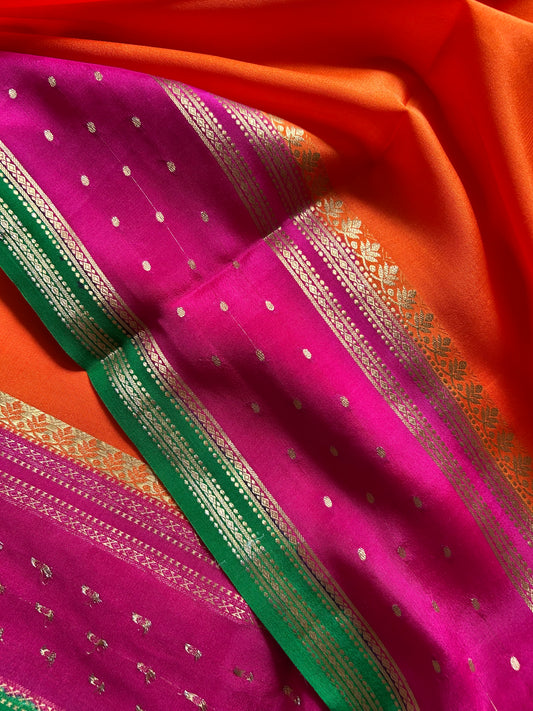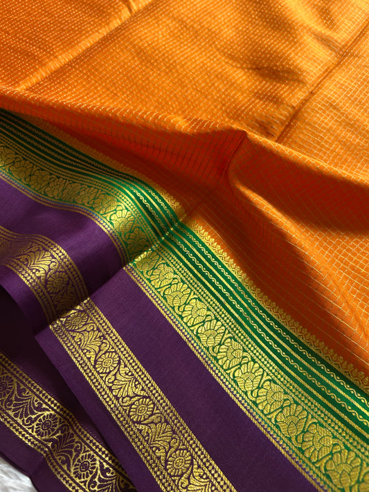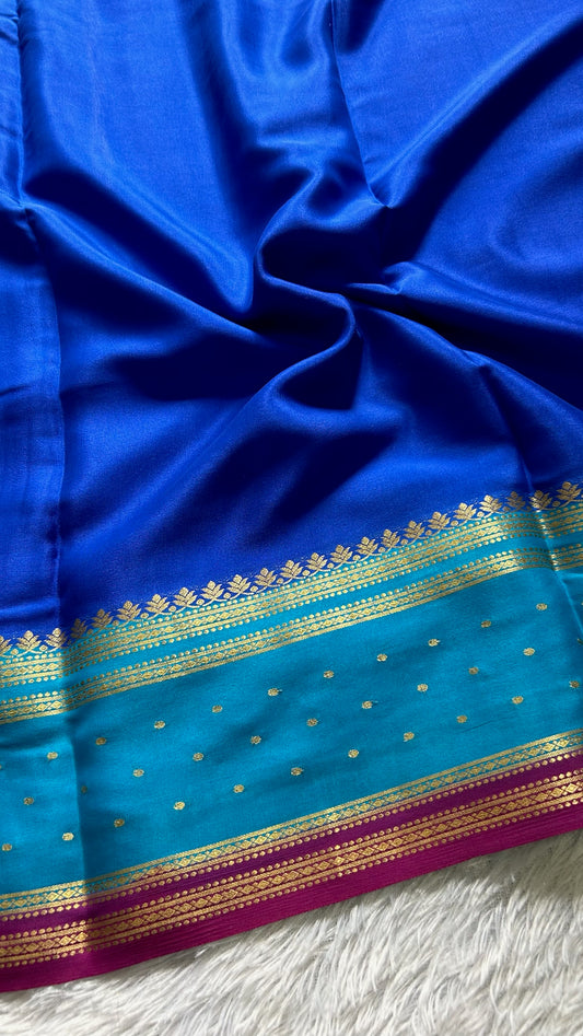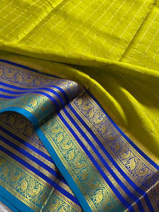 Pure Mysore crepe silk sarees with stunning triple contrast border.