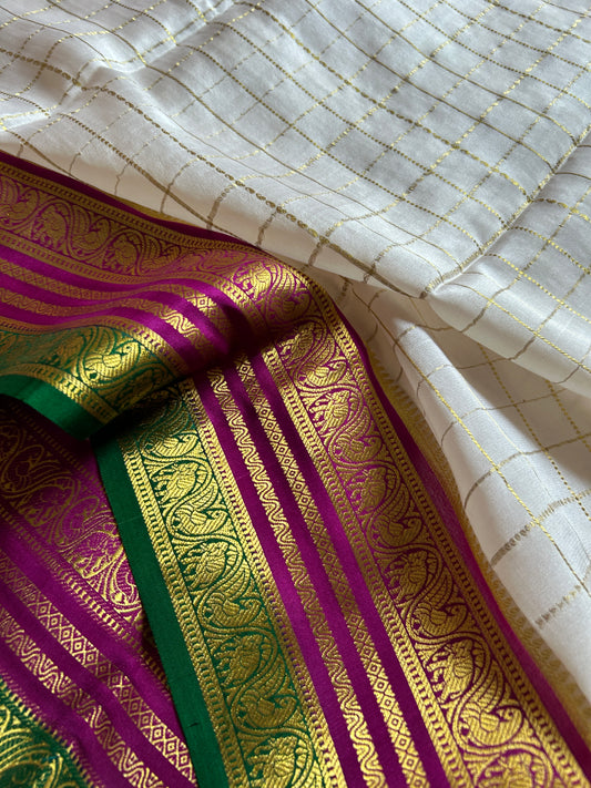 Tulasi (3D) : Off white-Magenta-Green