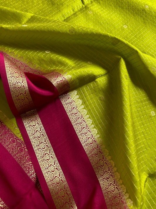 Pure Mysore crepe silk sarees with double contrast border.