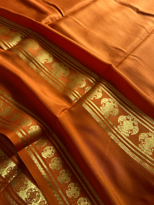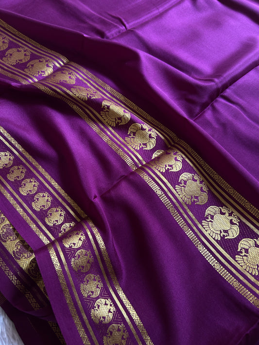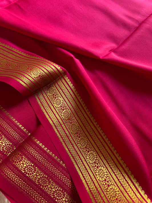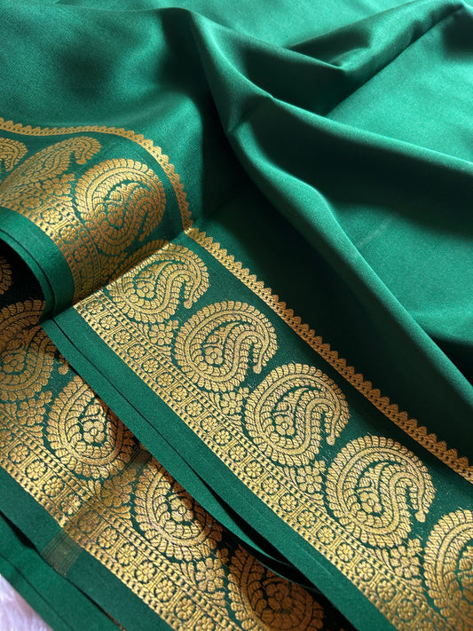 Pure Mysore crepe silk sarees in solid colors and classic border.