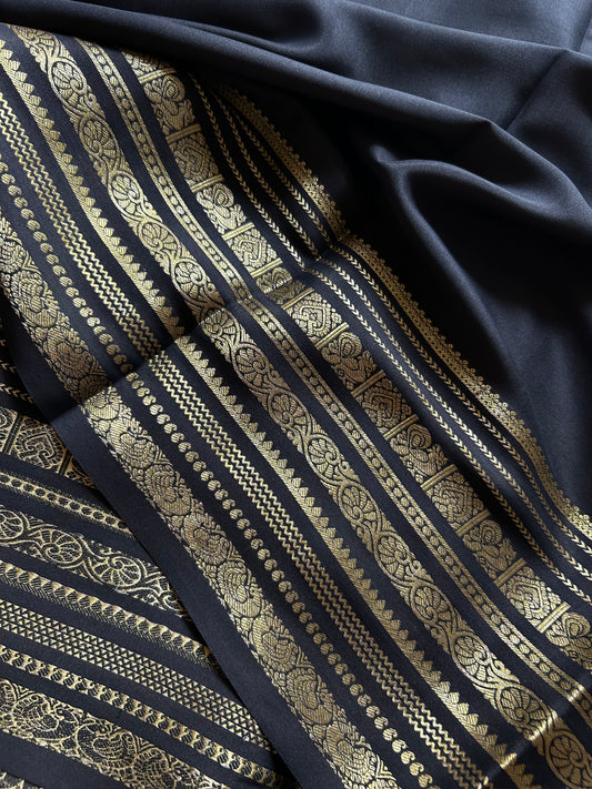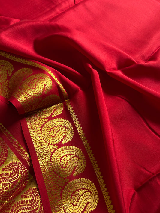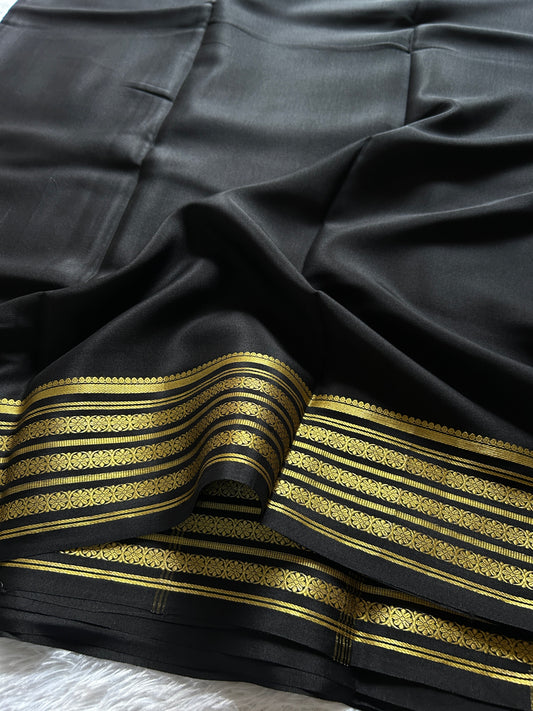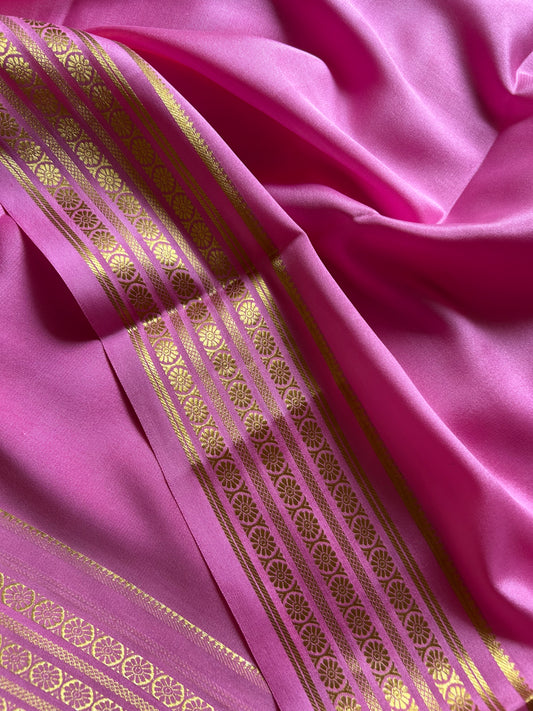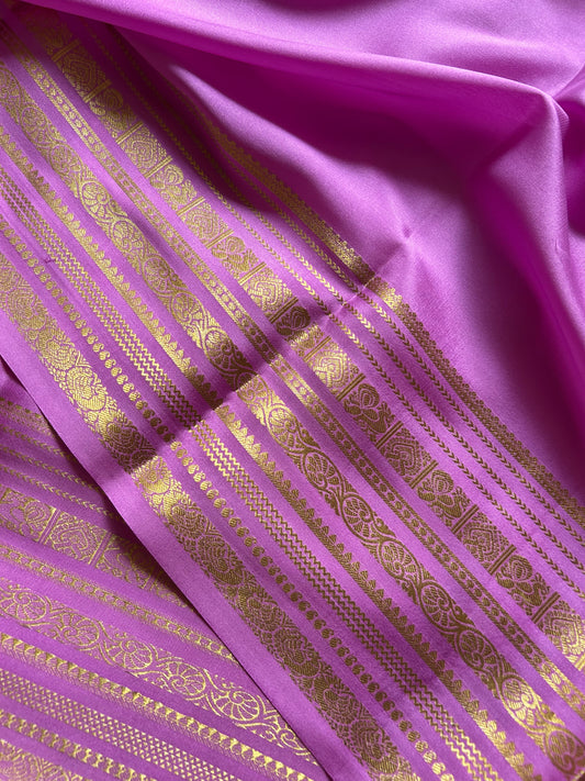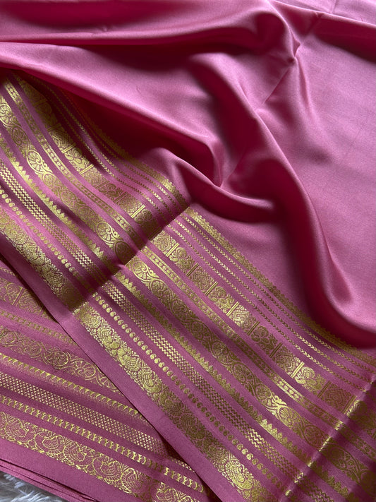Pure Mysore crepe silk sarees in solid colors and classic border.