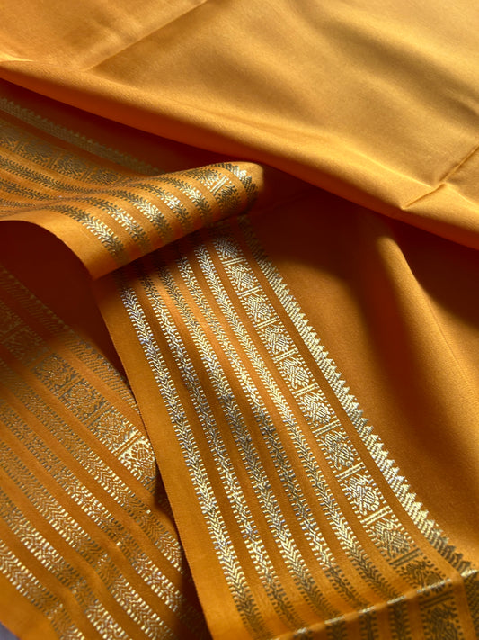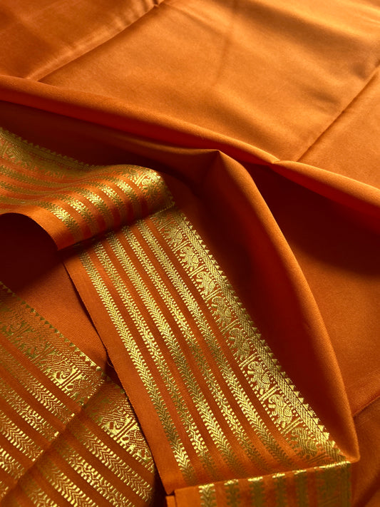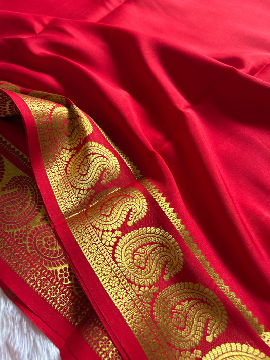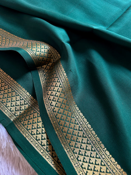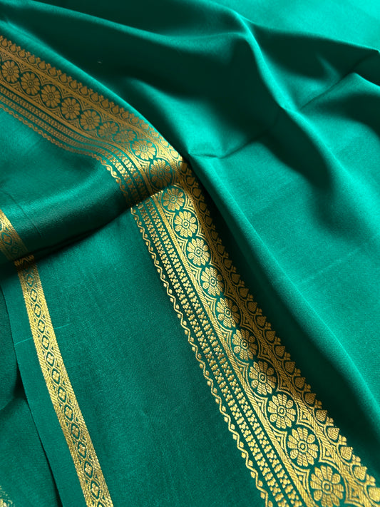 Pure Mysore crepe silk sarees in solid colors and classic border.