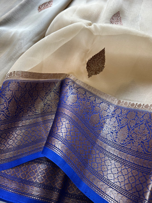 Pure organza : Off white-royal blue
