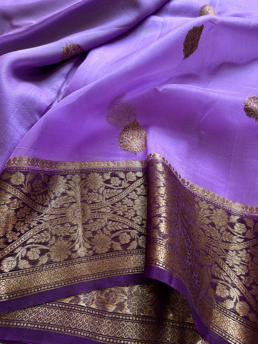 Pure organza sarees known for their lightness and sheerness with silky smooth texture.