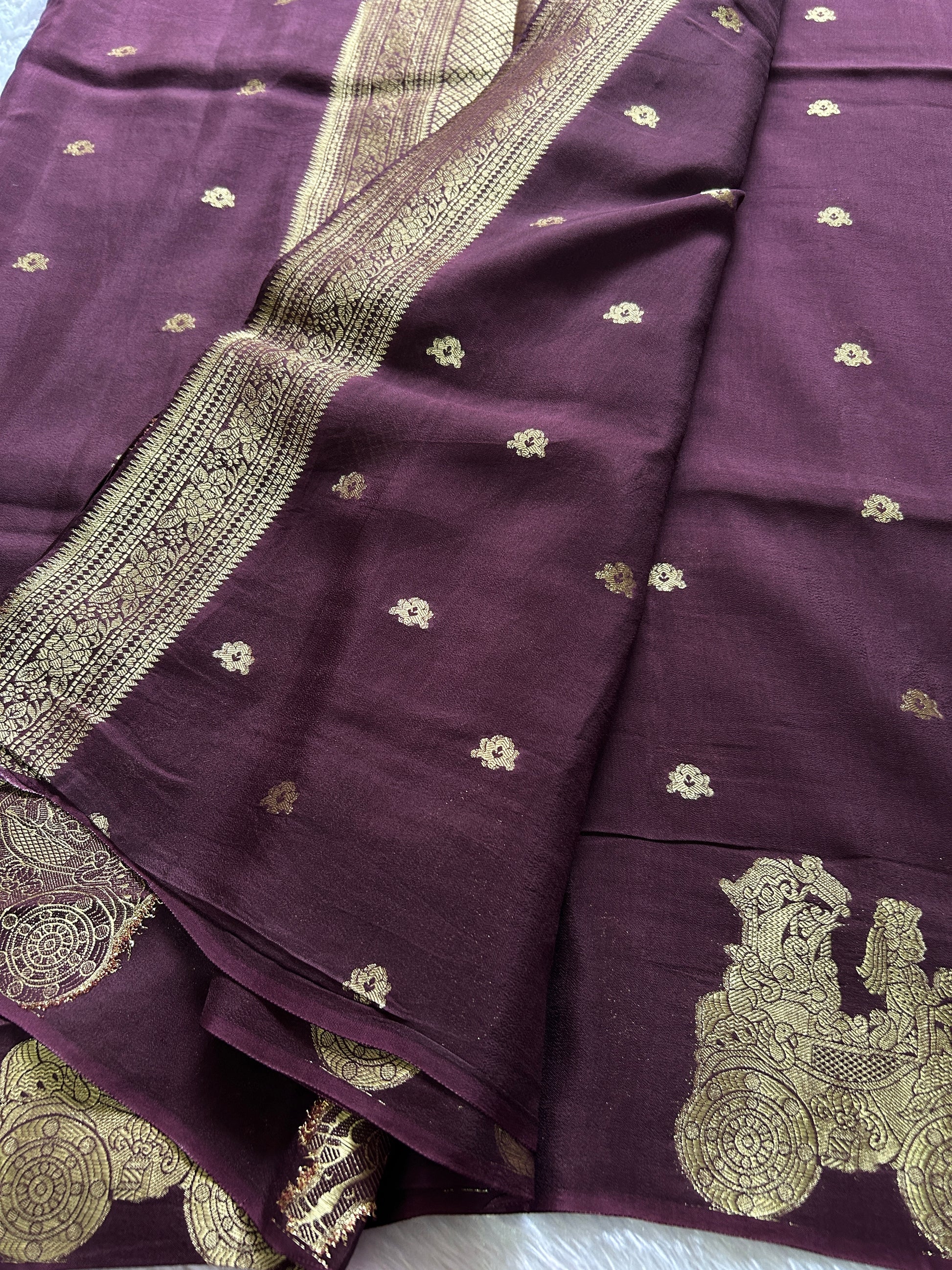 Introducing our Coffee Brown semi crepe silk saree, perfect for any occasion. The luxurious semi crepe silk fabric gives it a lightweight feel, while the coffee brown color adds elegance. The yellow pallu adds a pop of color and the pocket friendly price makes it a must-have. Upgrade your saree collection today.