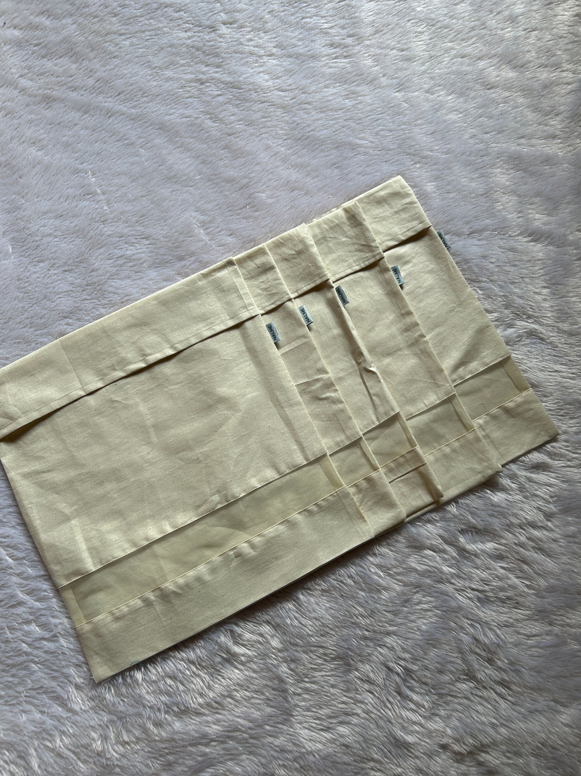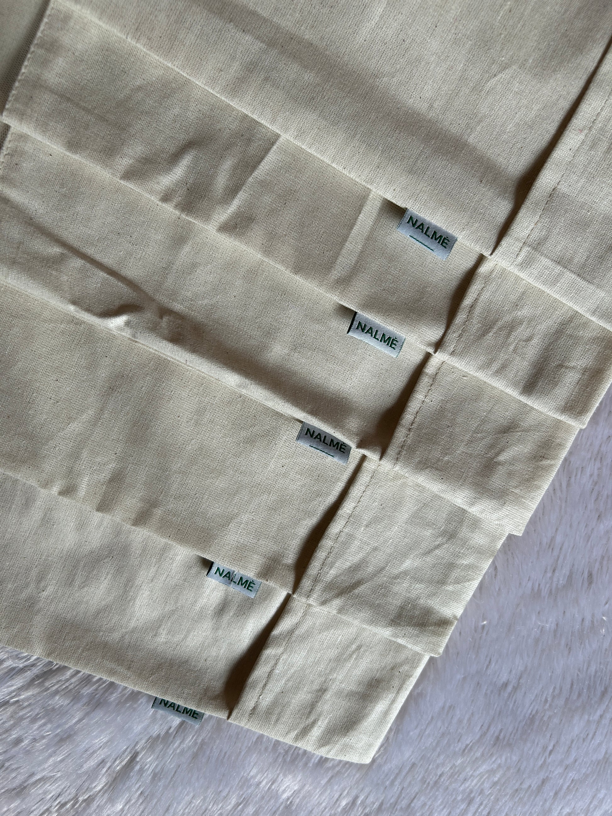 Crafted from high-quality, durable cotton, these saree bags provide soft, breathable storage that protects your precious sarees, dresses, and lehengas. The fabric is washable, allowing for easy maintenance and long-term use. Each bag features a flap closure, ensuring secure storage. Expertly stitched by trained artisans using matching thread, these bags measure 13.5 x 14.5 inches, comfortably fitting one large saree or two smaller ones, with an extra half-inch allowance for ease. Ideal for preserving your garments with care and quality.