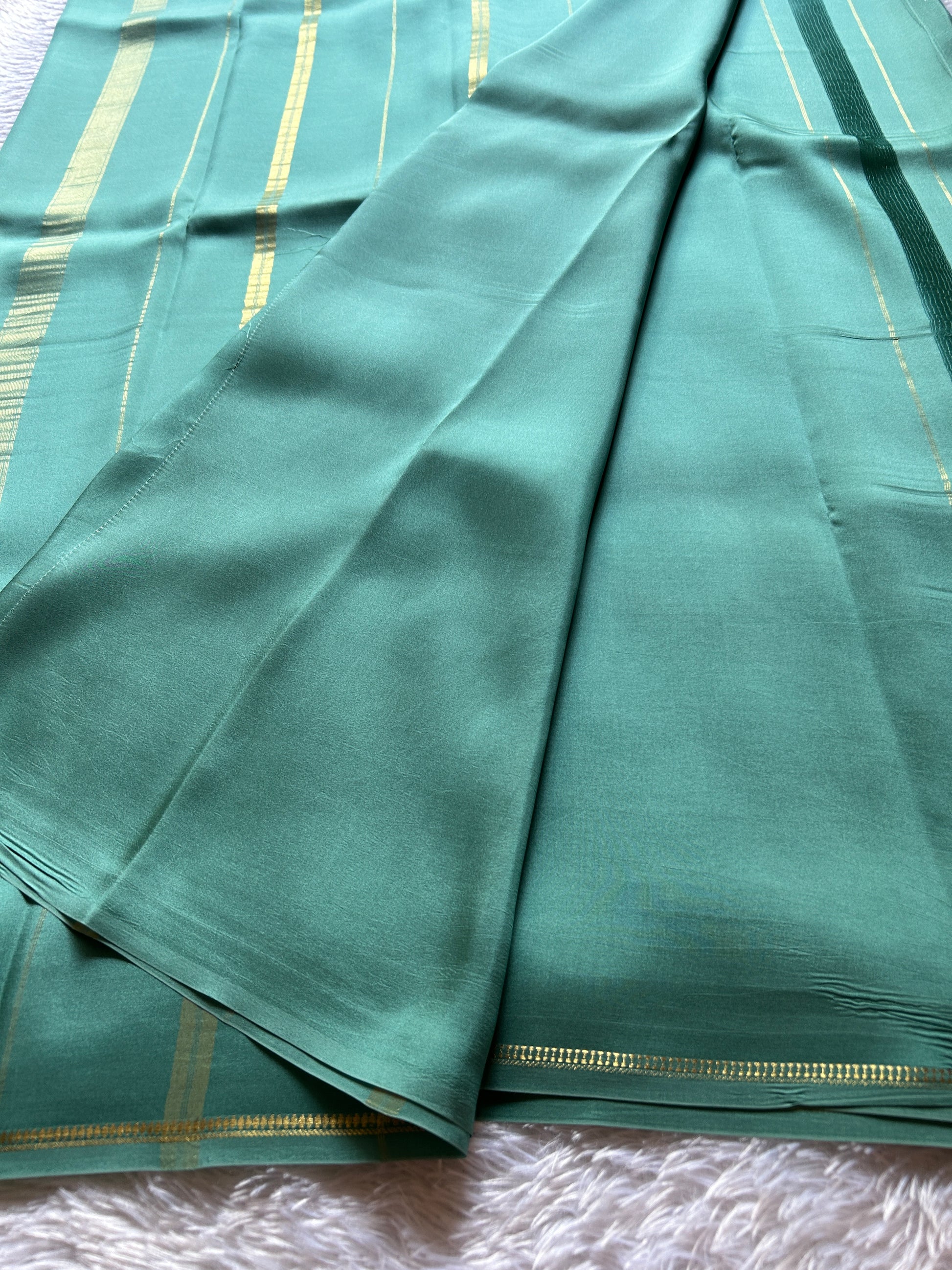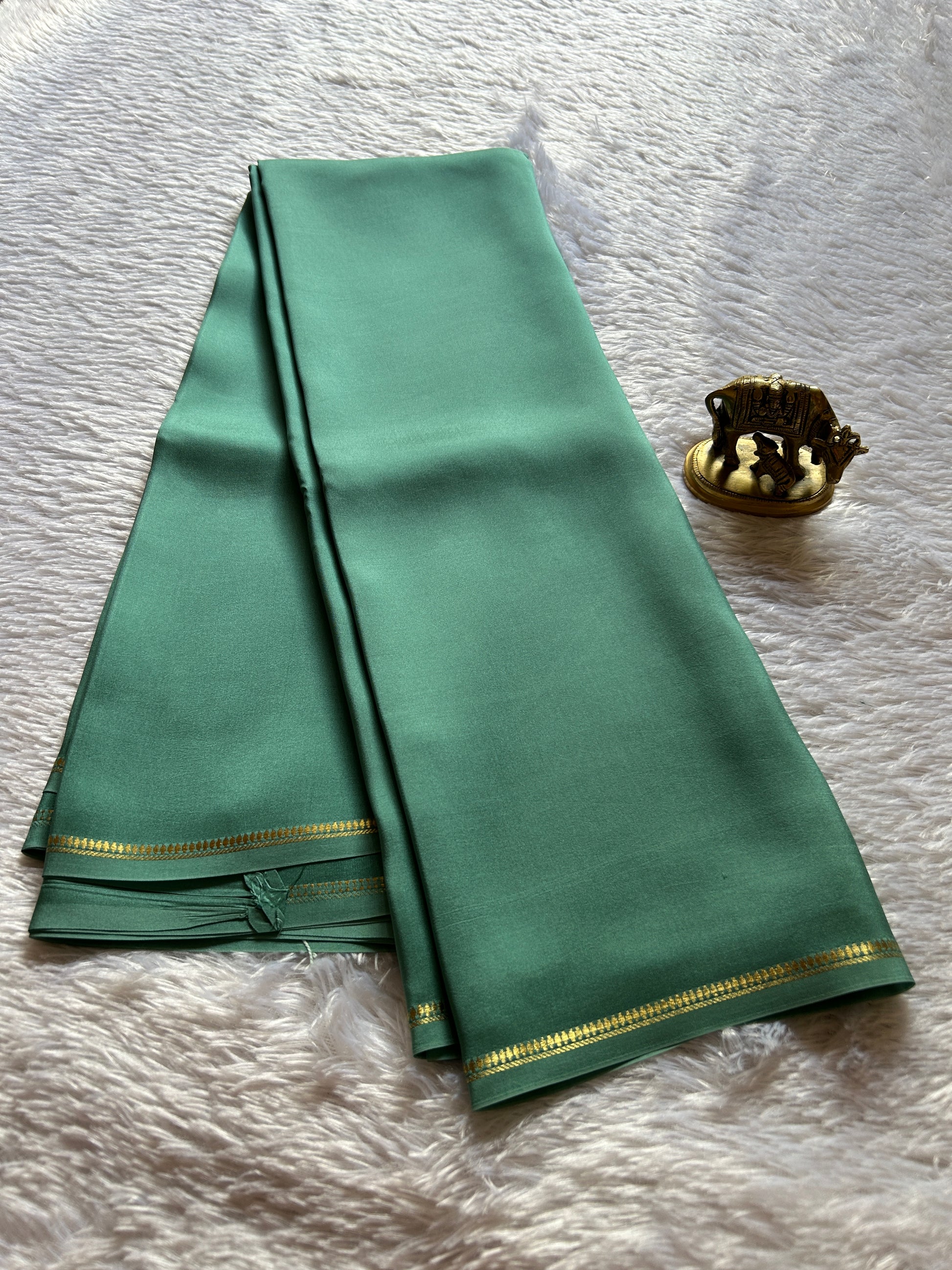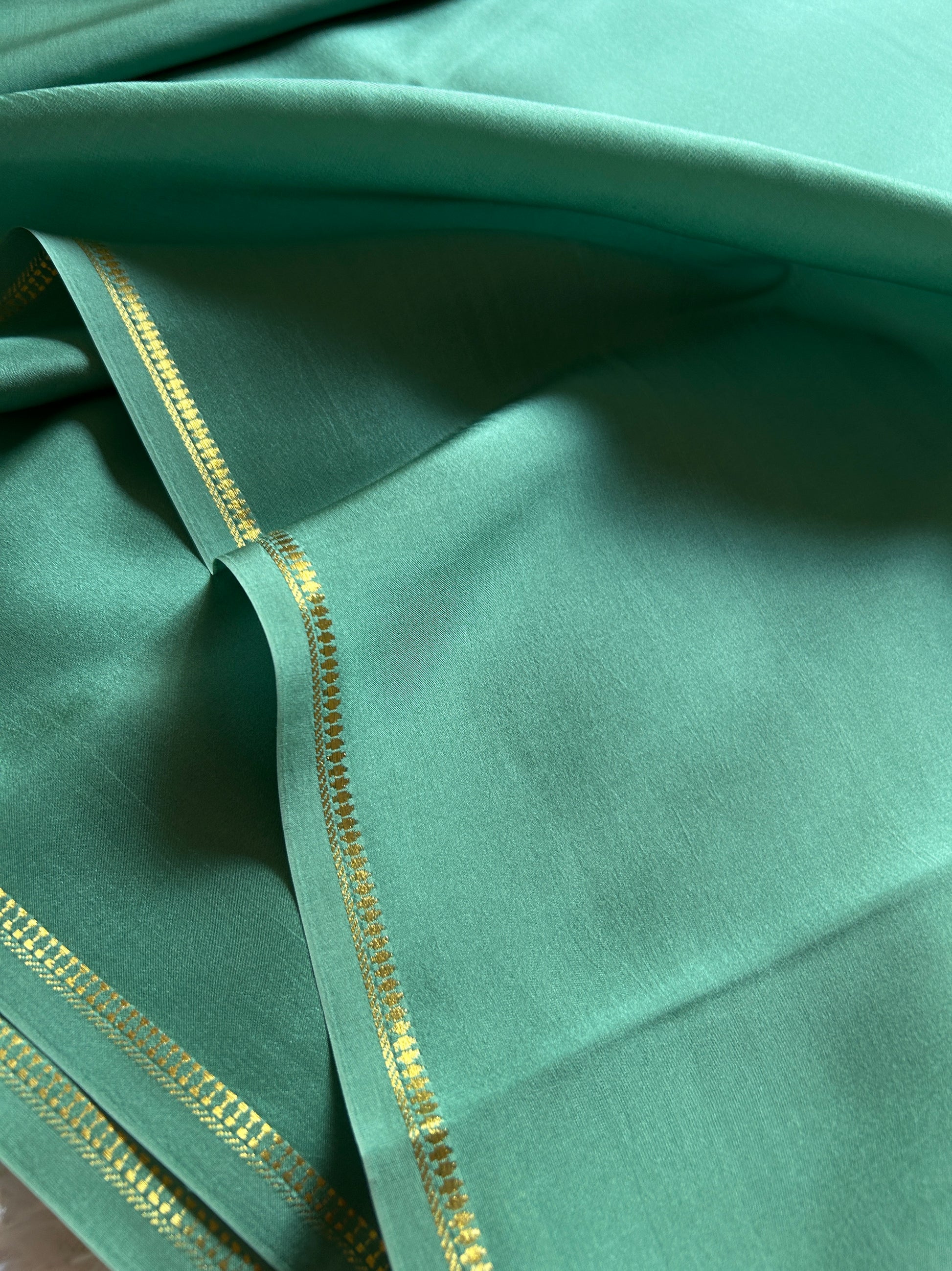 Elevate your traditional wardrobe with the Mani solid powder blue saree crafted from pure CSG Binny crepe silk. This exquisite saree features a delicate pure gold zari border and a beautifully adorned pallu, combining subtle elegance with timeless craftsmanship. Perfect for festive occasions or formal events, it offers both sophistication and comfort with its fine silk drape and refined detailing.