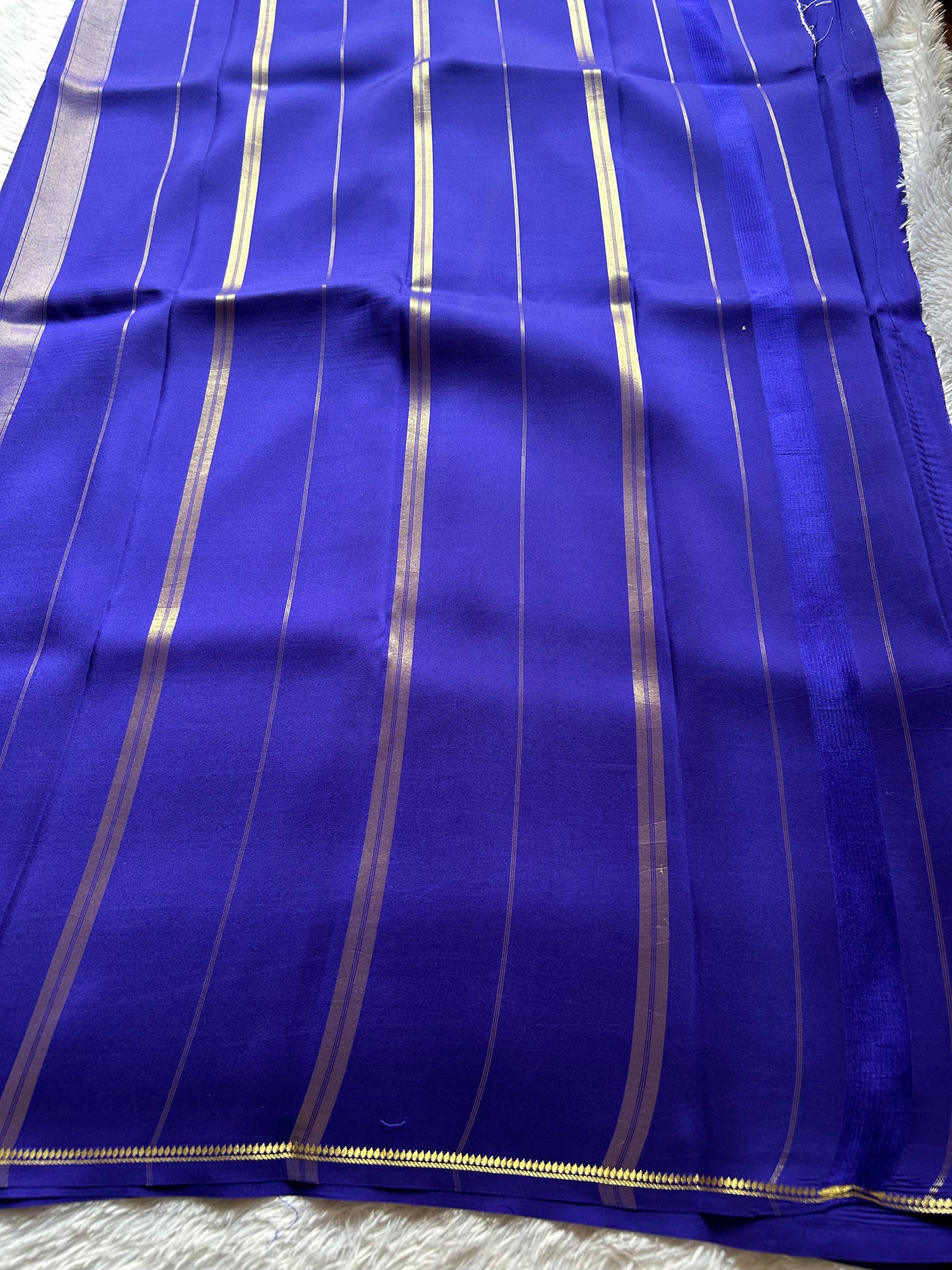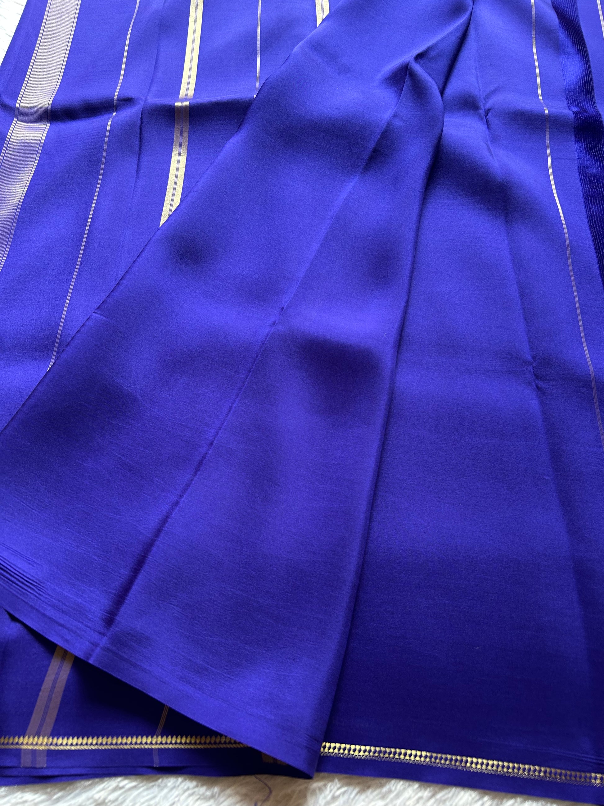 Elevate your saree collection with this exquisite dark blue pure CSG Binny crepe silk saree. Crafted from premium crepe silk, this piece offers a luxurious drape and refined texture that flatters every silhouette. The saree is adorned with delicate pure gold zari detailing along the border and pallu, adding timeless elegance and sophistication. The rich royal blue hue provides versatility for both festive occasions and formal gatherings. Perfect for those who appreciate authentic craftsmanship and understated luxury, this saree is a wardrobe essential that transcends seasonal trends.